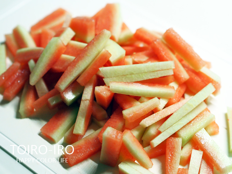 子どもたちがハマった 残ったスイカの皮で超簡単漬け物!!きょうの晩ごはん、なぁに? ☆野菜が大好きになるレシピ☆。