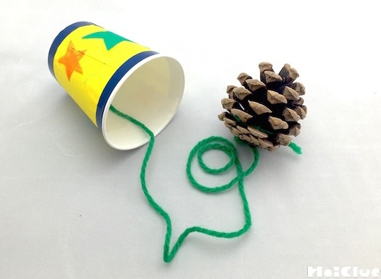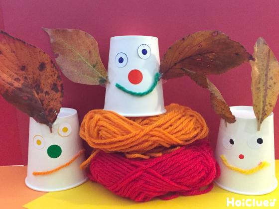 秋の手作りおもちゃ 可愛いみのむしのケン玉で遊ぼう♪あつめた落ち葉で🍂。