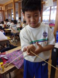 秋のおもちゃ作り 1年生舟橋村立舟橋小学校。