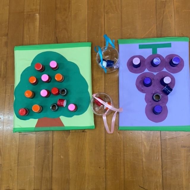 秋のおもちゃ作り:マスカットケーキを手作り。