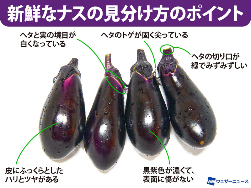 ナスに豊富な栄養価 鮮度はヘタで見極める - ウェザーニュース。