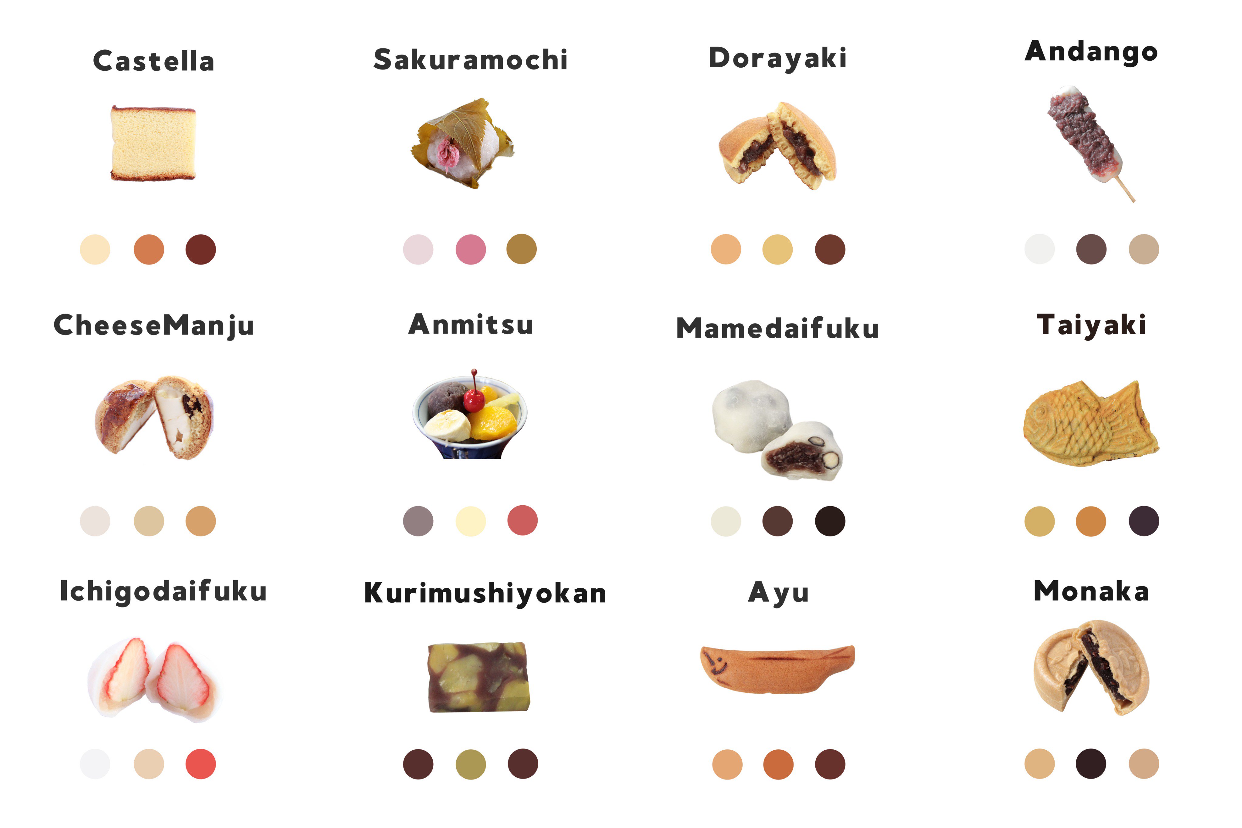 せせなおこ 和菓子文化研究家 on X: "和菓子カラーがかわいいので配色表を作りました◎ やっぱり茶色が多いいなと思いつつ茶色いものはおいしいのだ!なんて自信満々な和菓子たちの声が聞こえて来そうな気がします🙂https:t.co J5DjhUgTZj"X。