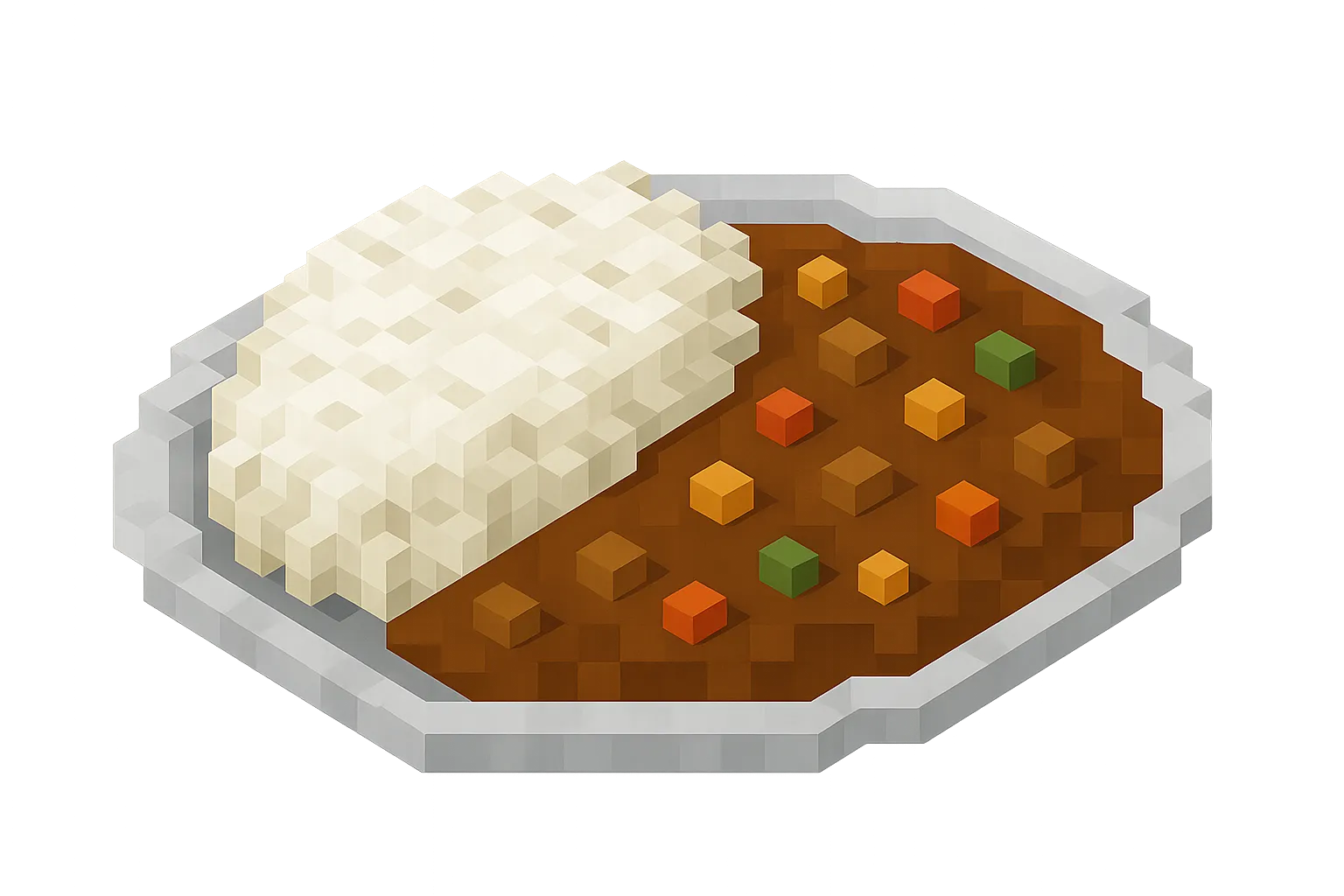 かわいいブロック調のカレーイラスト・フリー素材なら「シンテリ」。
