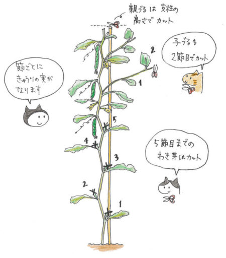 きゅうりの摘心の仕方わき芽はどこ?葉っぱの切り方を図解で解説🍀GreenSnap グリーンスナップ。