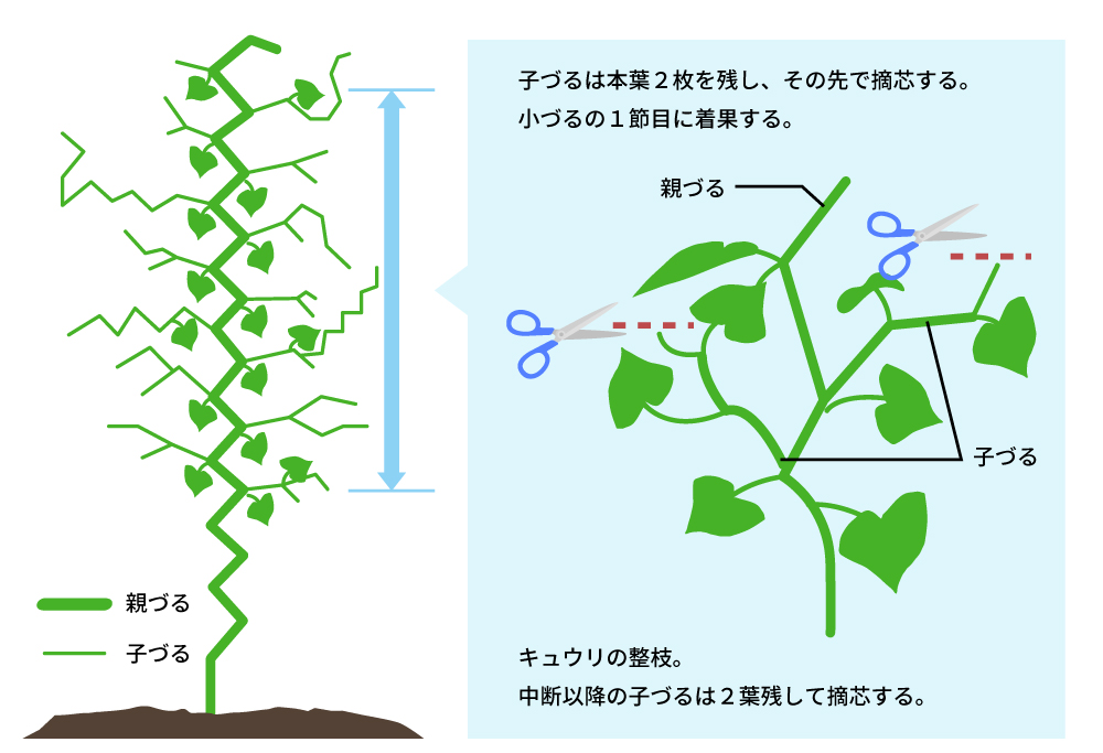 栽培のカギとなる!キュウリの摘心 摘芯 方法について農家web。