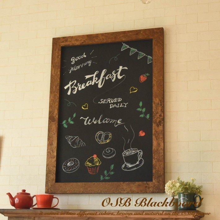 ブラックボード 50cm x 100cm OSB ブラウン ナチュラル 黒板 看板 壁掛け 木製フレーム チョーク カフェ風。