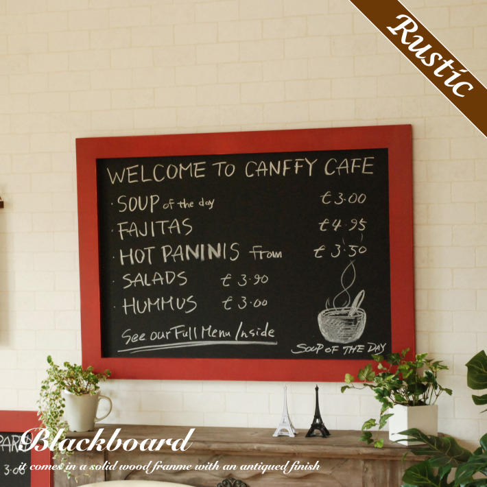 壁掛けできるカフェの木製おしゃれなブラックボード レッド 64x88cm 照明とインテリアの通販Canffy 公式。