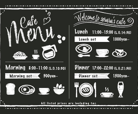 チョークアート風メニューデザインをお作りいたします カフェなどのメニューボード風デザインはいかがでしょうか♪ココナラ。