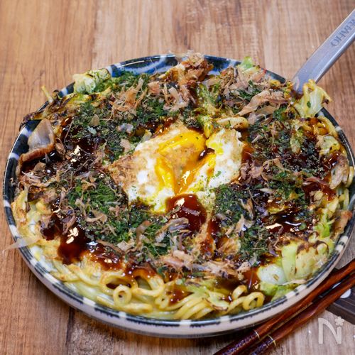 豚モダン焼き<お好み焼と焼きそばのマッチング> - おうちで楽しむ簡単レシピ。