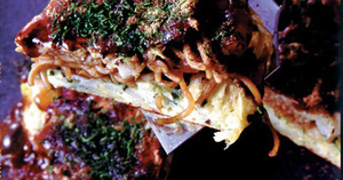 麺とお好み焼きがコラボ!ボリュームたっぷり「モダン焼き」フーディストノート。