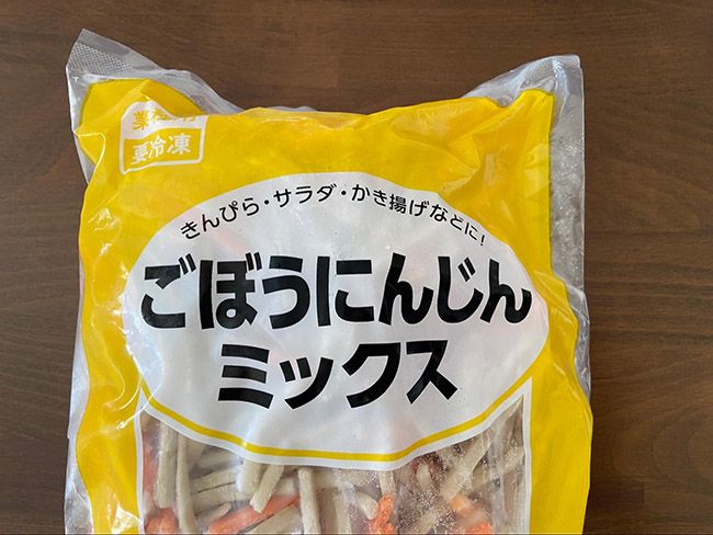 業務スーパーの大容量の冷凍野菜「ごぼうにんじんミックス」はこんな料理に使える!食べるプラス。
