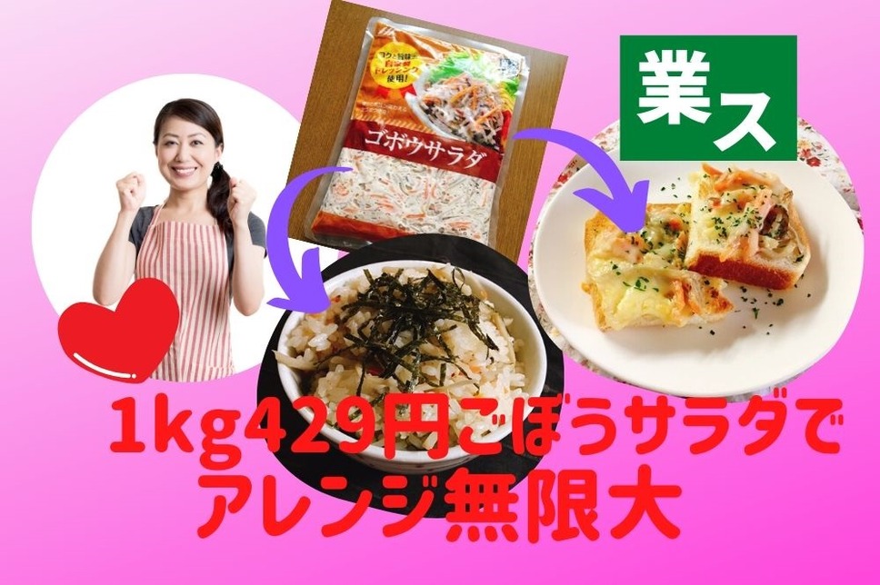 業ス 1kg429円大容量ごぼうサラダは冷凍保存OK 解凍後の絶品アレンジレシピも紹介マネーの達人。