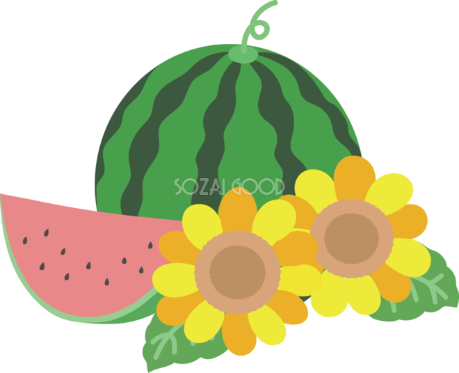 西瓜 スイカの花付き のイラスト素材商用可能な無料 フリー のイラスト素材ならストックマテリアル。