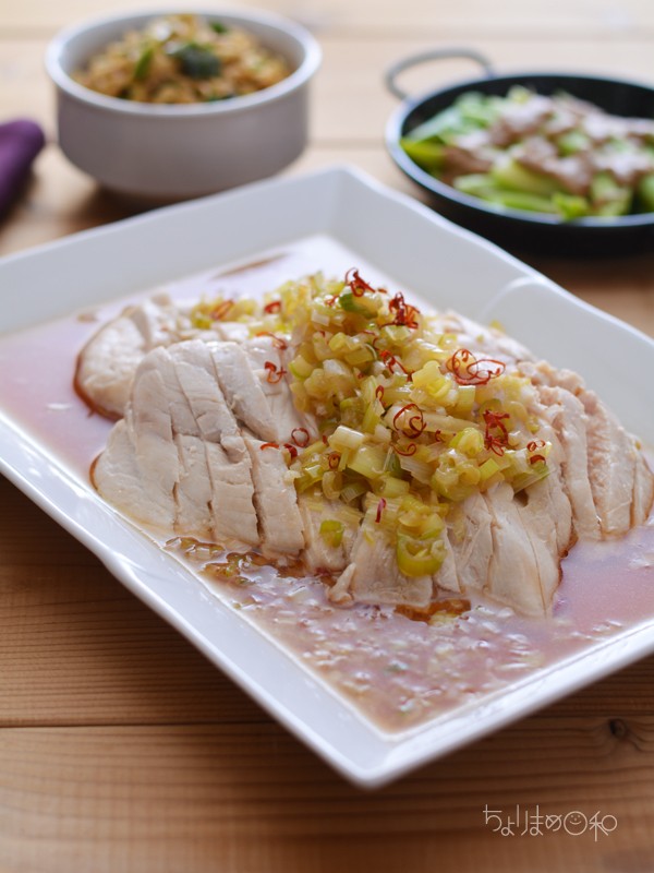 おうち居酒屋 さっぱりなのにご飯がすすむ『ゆで鶏ピリ辛だれ』。