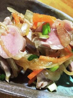 砂肝と新玉のネギポン酢 セブンイレブン風。