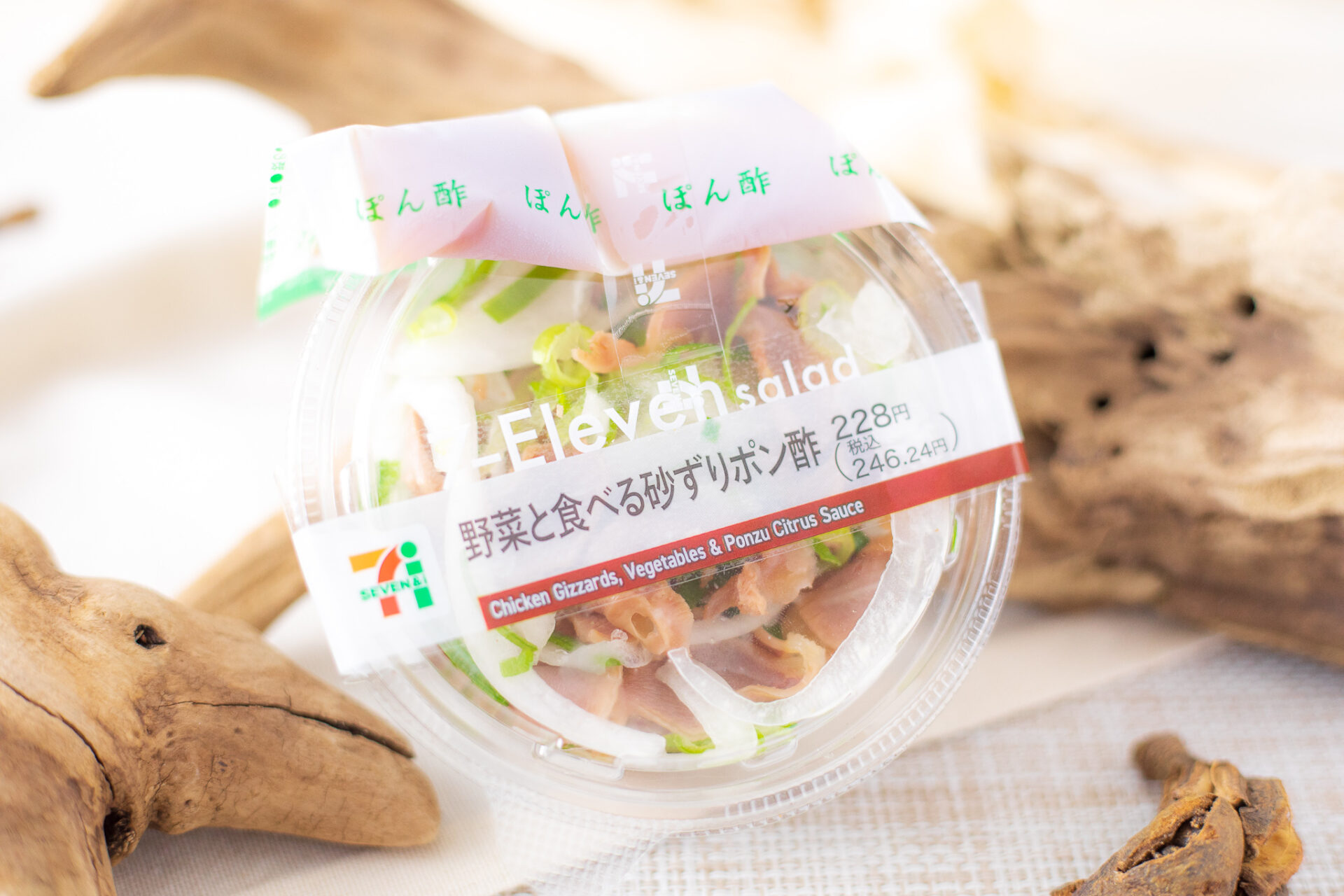 セブン-イレブン『野菜と食べる砂ずりポン酢』は香り立つ青ねぎ・玉ねぎと薄切りの砂ずりの相性が抜群なおつまみ系惣菜!えんぎ株式会社ENGIInc。