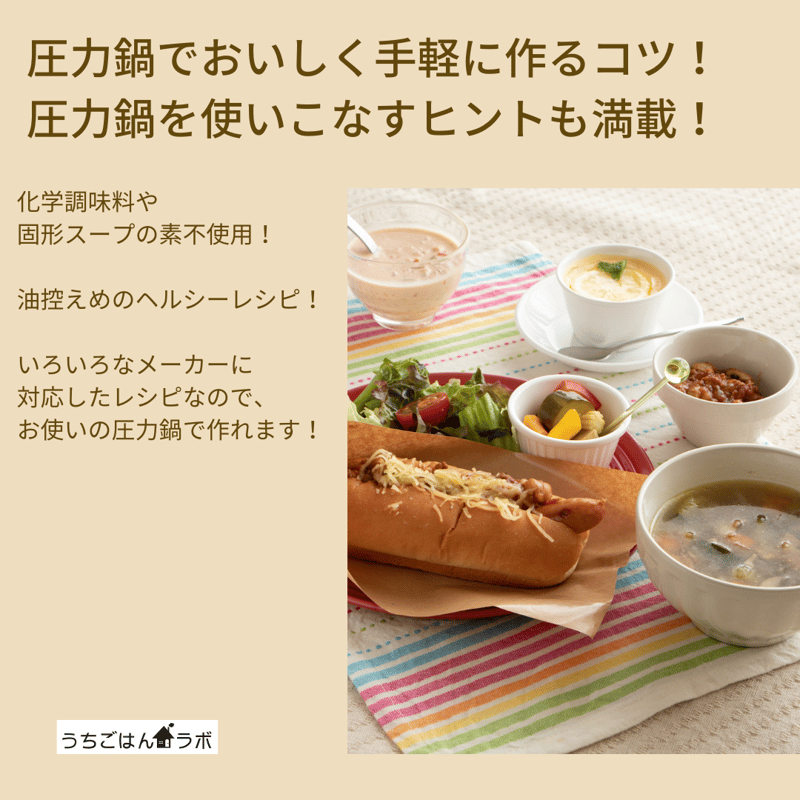 動画レッスン・レシピ付 圧力鍋でチリコンカン・チリドッグランチ〜全4レシピ〜うちごはんラボ。