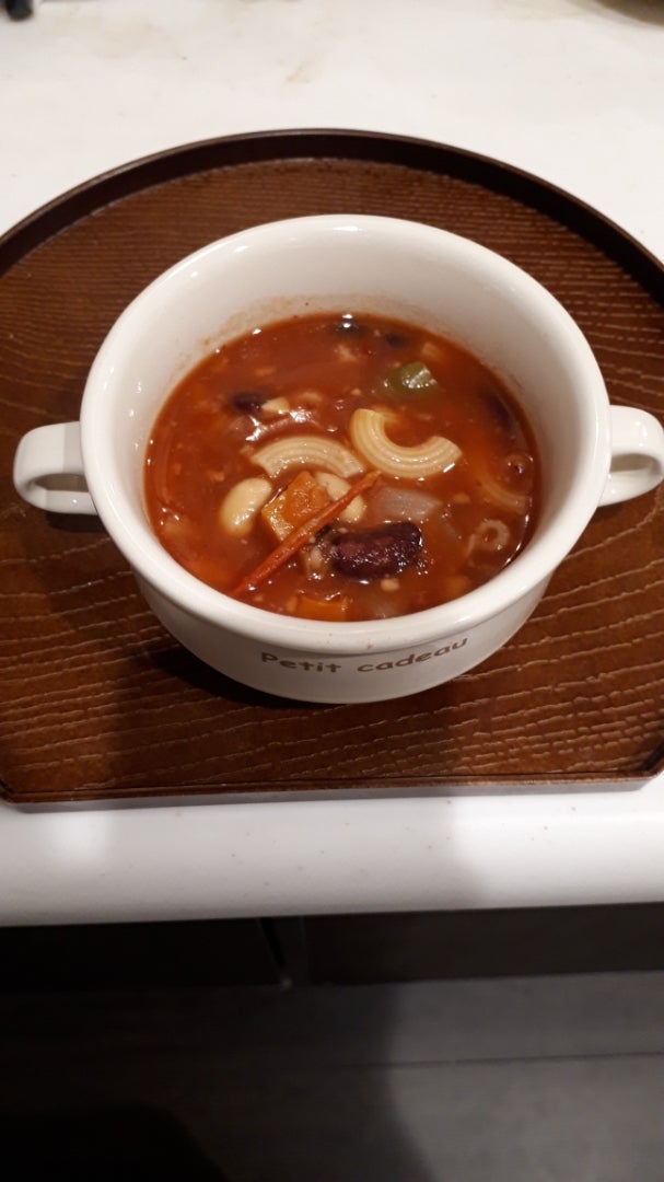 チリコンカンスープ スパイシーで夏にピッタリ。
