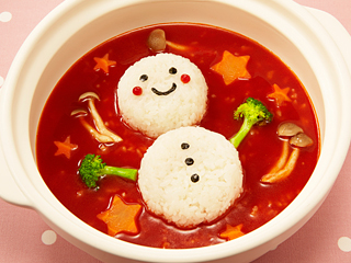 鍋のシメ クリスマス雪だるまリゾット トマト鍋。