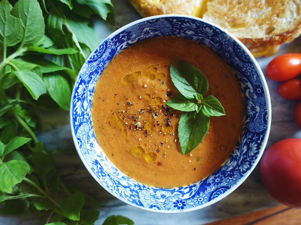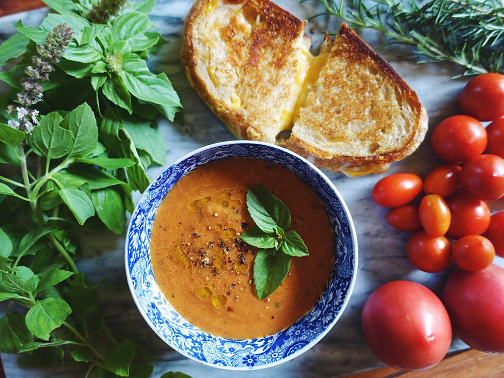 バジル&ガーリック香るローストトマトスープ&グリルドチーズサンドイッチGardenStoryガーデンストーリー。