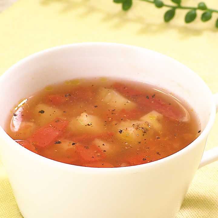 切って煮るだけ♪ じゃがトマトのコンソメスープ。