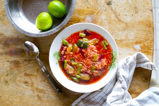 トマトジュースで簡単!クリスマスカラーポタージュぶるキッチン。