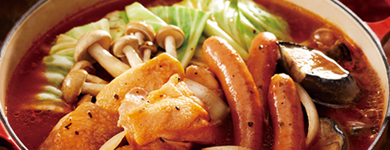 シャウエッセン スペシャルロングのクリスマス・トマト鍋。
