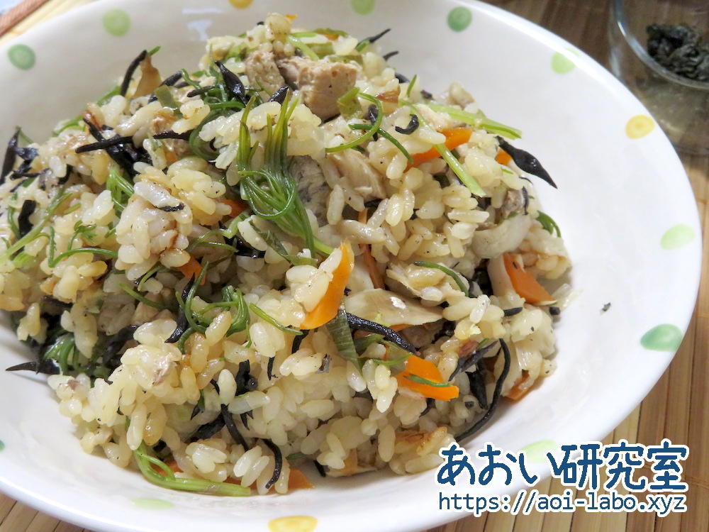きざみこんぶときのこの炊き込みごはん。