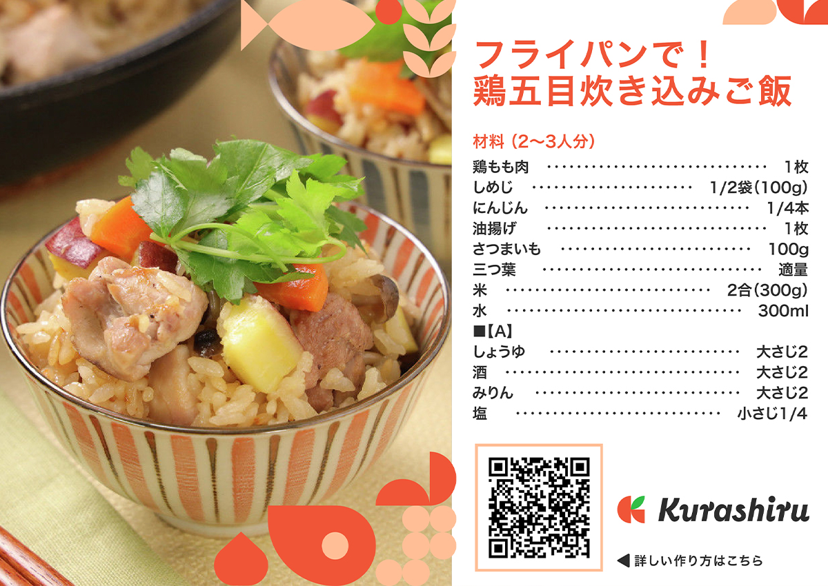 少量でも簡単に美味しく炊けます!直径20cmの小さなフライパンで作る 基本の炊き込みごはん。