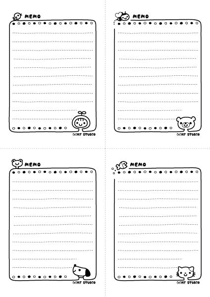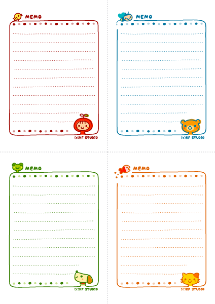 かわいいメモ用紙 無料 テンプレート ダウンロード 素材 作成 作り方。