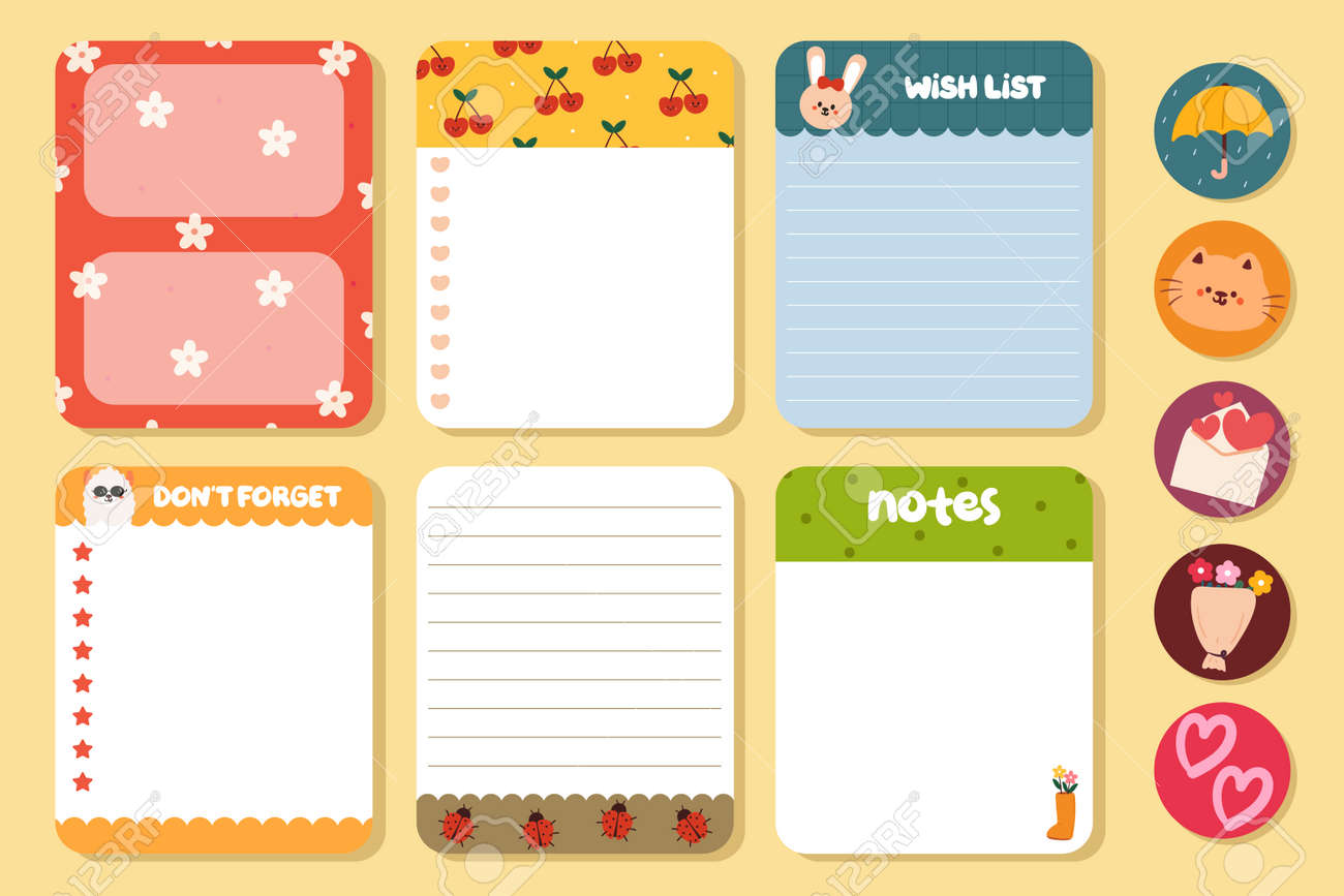 日記、メモ、日記用のかわいいメモ用紙デザインのイラスト素材・ベクター Image 190728503。