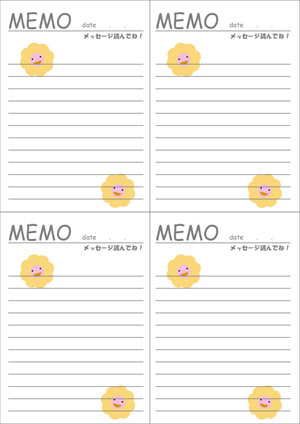 メモ用紙のテンプレート「癒し A4サイズ4等分 」ダウンロードかわいい無料イラスト 印刷素材.net。