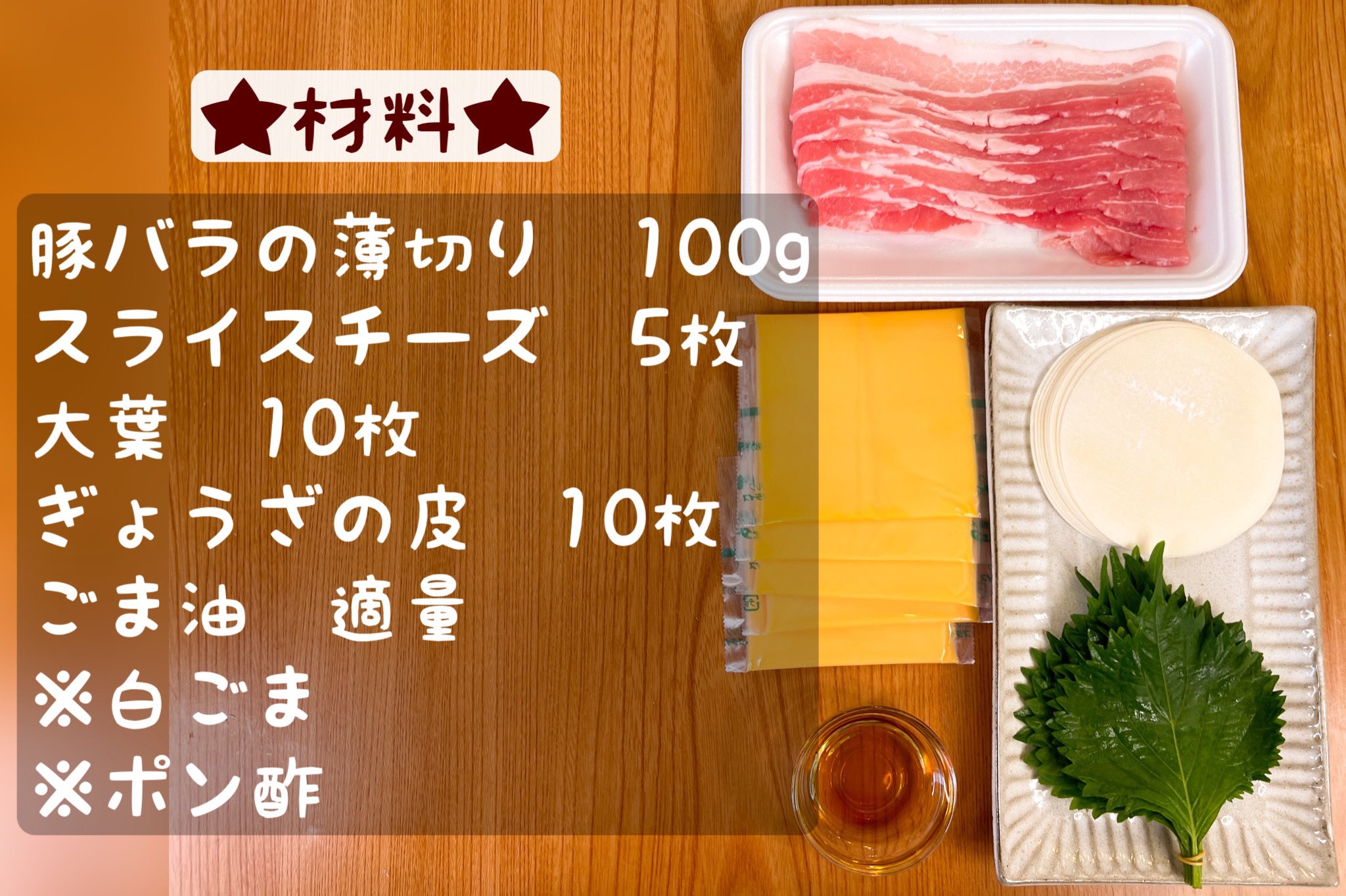 まるみキッチン 簡単レシピon X: " 大葉とチーズの豚バラぎょうざ風豚バラチーズのこってり感に大葉のさっぱり感が相性抜群!パリっと焼き上げられた餃子の皮の食感も最高です!材料豚バラの薄切り 100g スライスチーズ 5枚 大葉 10枚 ぎょうざの皮 10枚。