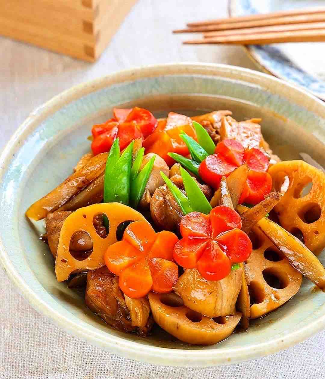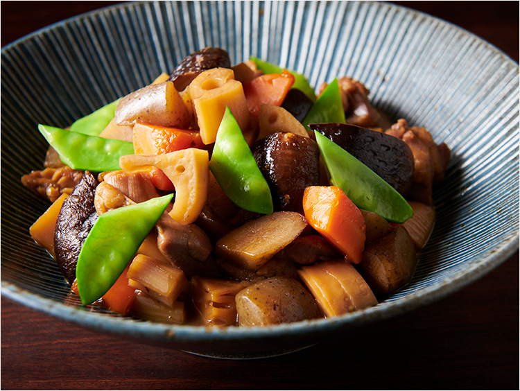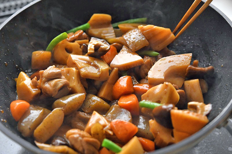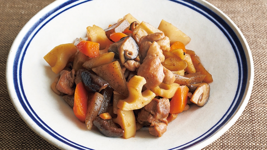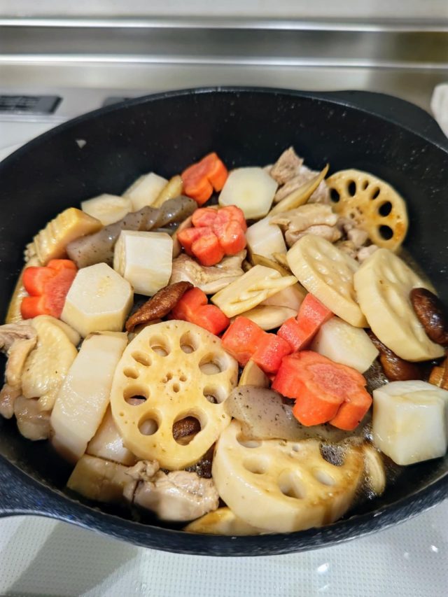 フライパンで簡単!基本の筑前煮 Simmered Chicken and Root Vegetables。