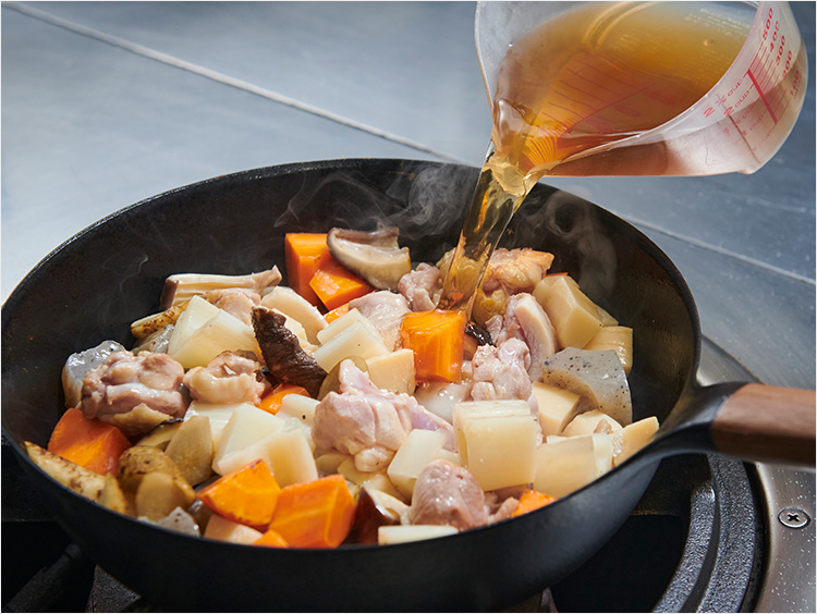 フライパンで炒めて煮るだけ。おせち料理のひとつ「筑前煮」の作り方 - 朝時間.jp。