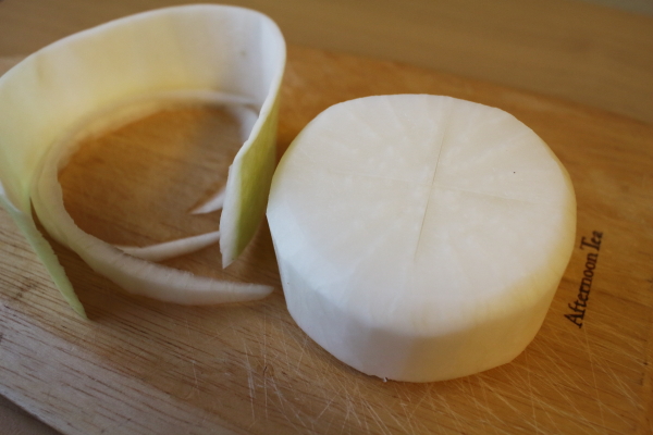 料理の基本! 片栗粉を使った大根の下ゆで。