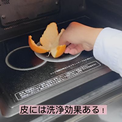 家事ハック 食べ終わったみかんの皮は電子レンジ掃除に活用!油汚れやニオイすっきりえんウチ。