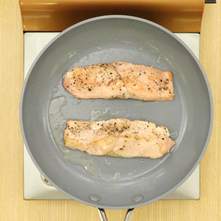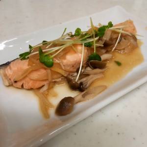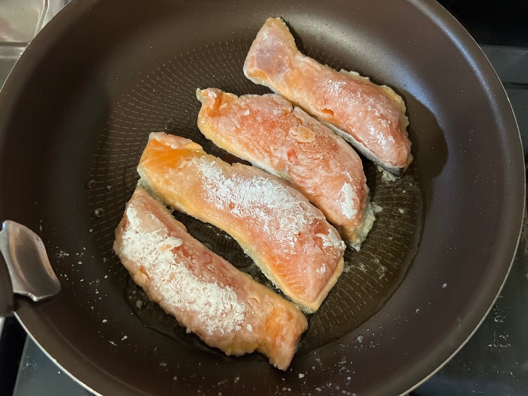 バターが香る♪ サーモンのバターポン酢ムニエル。