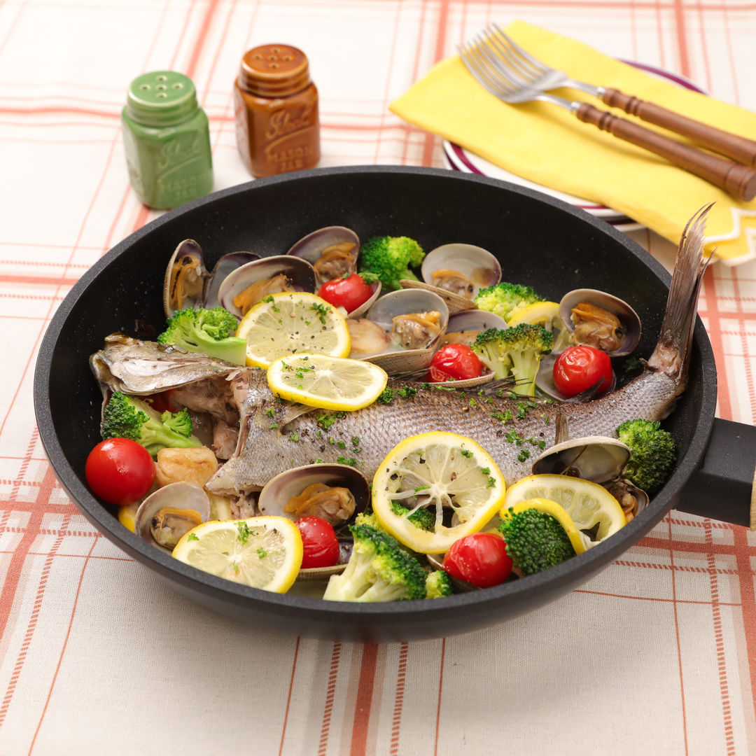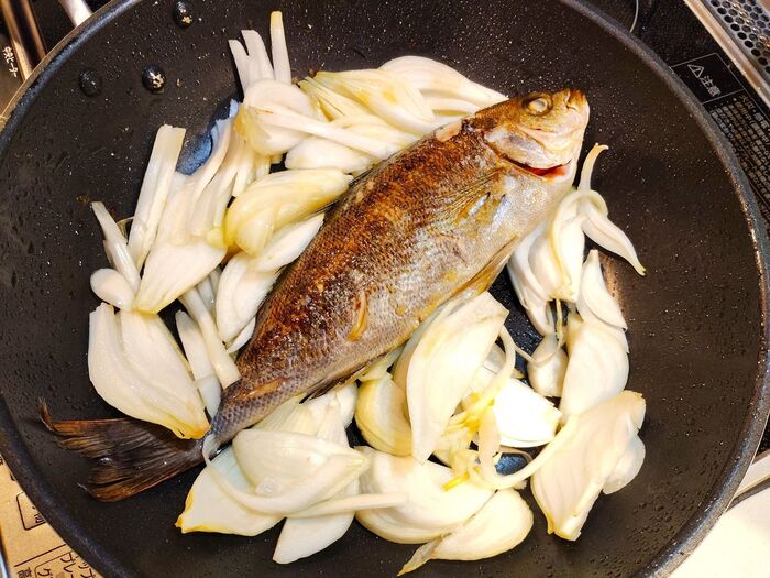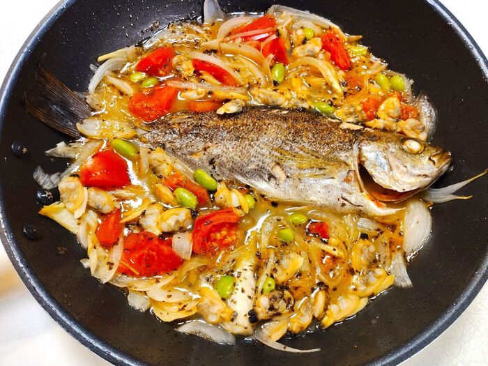 フライパンで作る! イサキとあさりのアクアパッツァ。