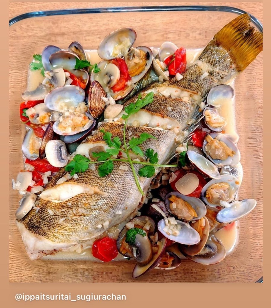 いやー美味かった!, イサキのアクアパッツァ🤤, 何年ぶりに作ったんやろ, 魚をフライパンで上手に焼く方法誰か教えてください🥹,イサキ、アサリの旨味とトマトの酸味や旨味, ちょっといい白ワインを水より多めに, アンチョビもまたいい味を出してくれる,イサキのフワフワした身と旨味爆弾スープの相性🤤, 後はちゃんとした焼き方覚えたらヤバいの完成しちゃいます。, 挑戦して良かった🤭,。