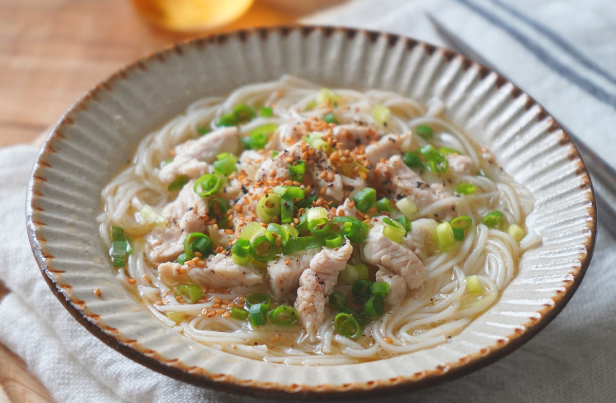 食欲すすむ塩味のつゆ。ネギ塩だれの鶏そうめん。