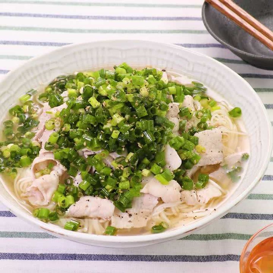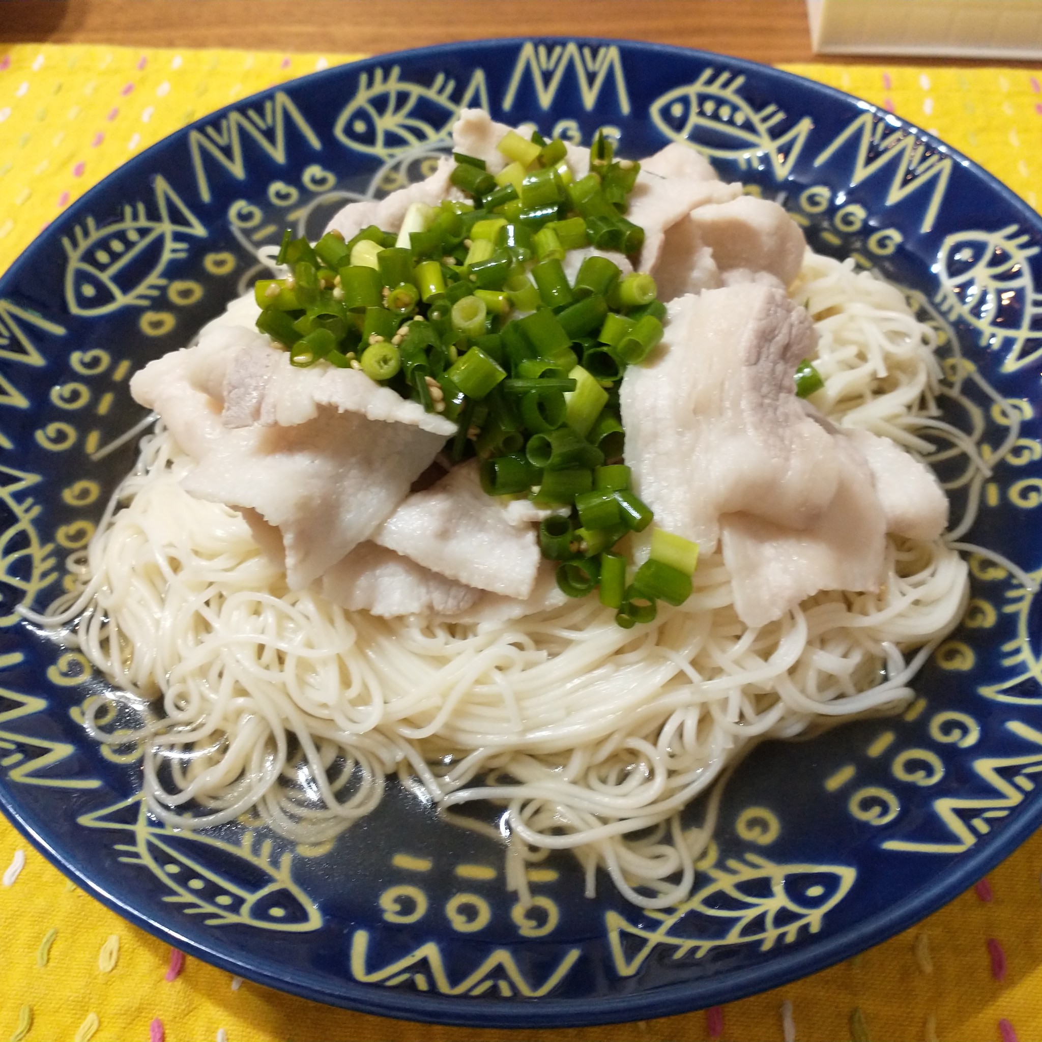 豚しゃぶねぎ塩ぶっかけそうめん。
