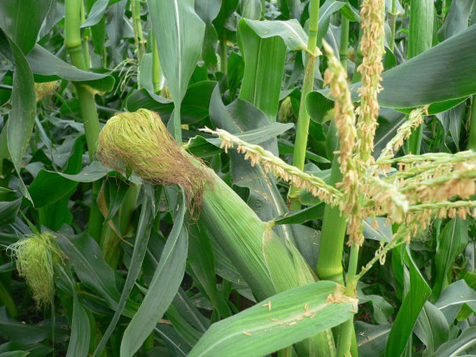 トウモロコシの雄花と雌花 : 楽餓鬼。