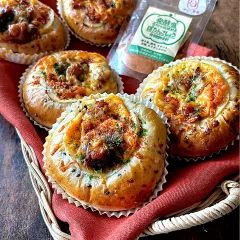 天使 のもっちりピザに新作 登場‼️赤ウインナー が盛りっとのったその名もthe ウインナーピザ🍕 自家製の肉味噌 を使った肉味噌ピザ🍕ピザ販売店舗各店で随時販売開始します‼️ピザウインナーコーン肉味噌茄子新商品ベーカリー三河屋愛知。