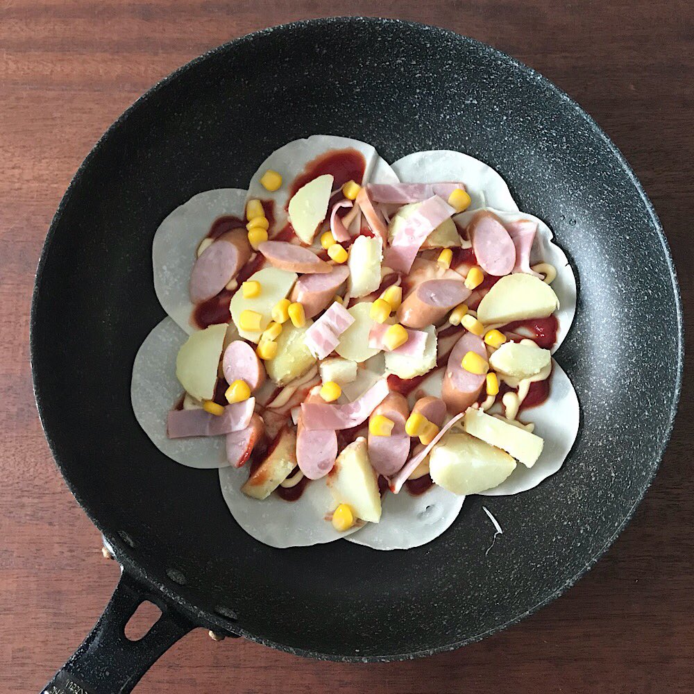 ホットプレートでかんたん!コーンたっぷりピザ。