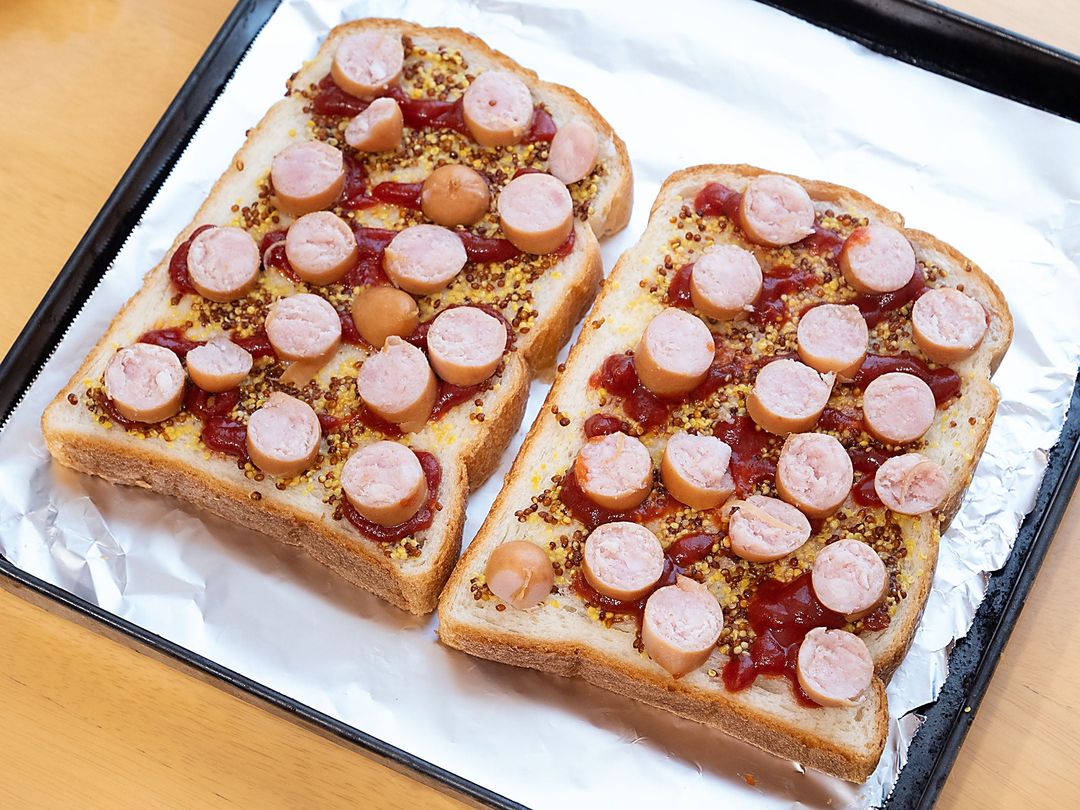 お手伝い大作戦!ウインナーとコーンのケチャマヨトースト ^O^ ♪。