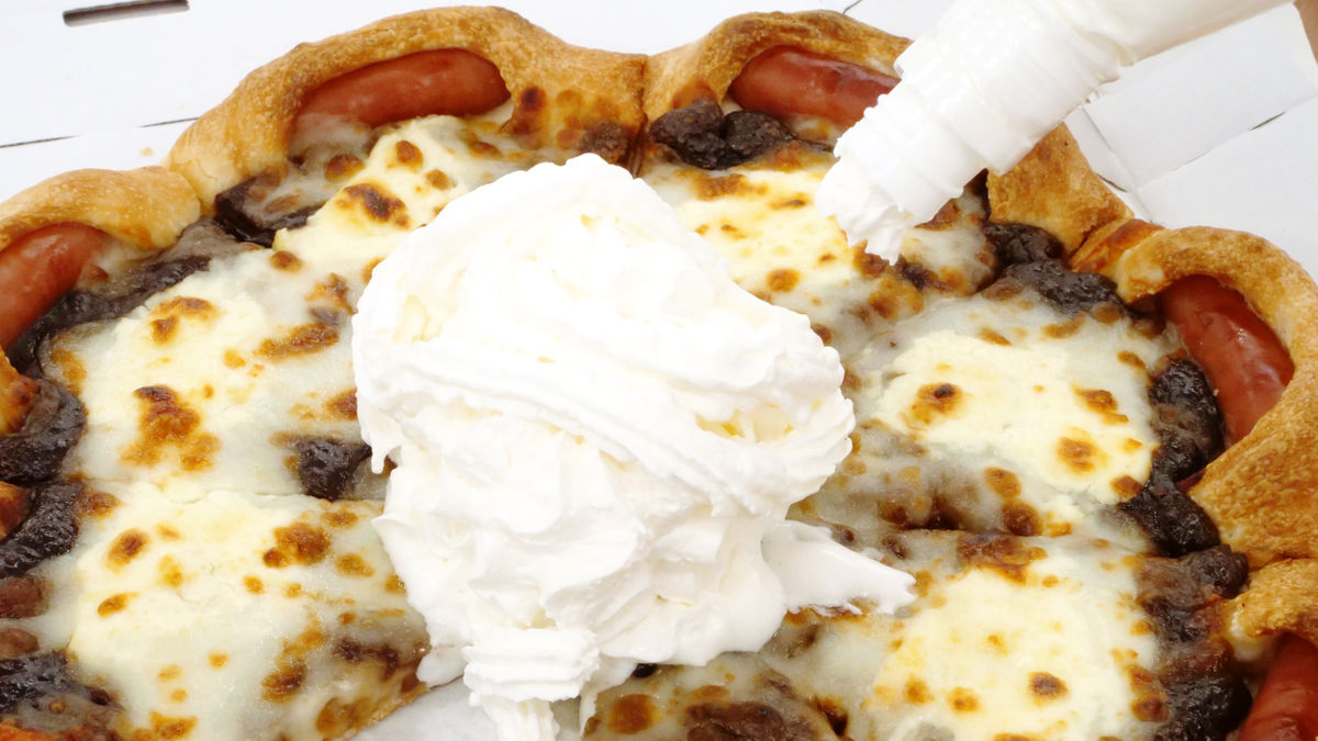 ウインナー+コーヒートッピングのピザにホイップクリームをたっぷり乗せて完成するピザハットの「 衝撃 多分それ違うwwwウインナーコーヒー」を食べてみた- GIGAZINE。