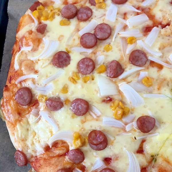 コーンとソーセージのピザレシピ・作り方 - E・レシピ。
