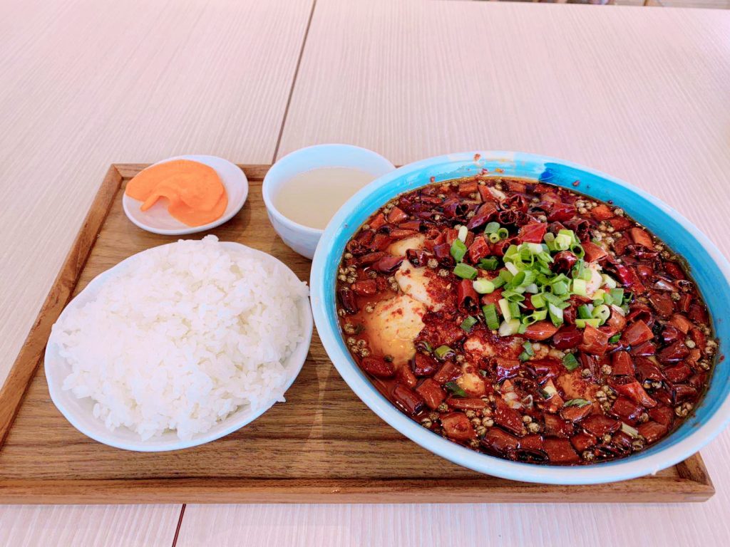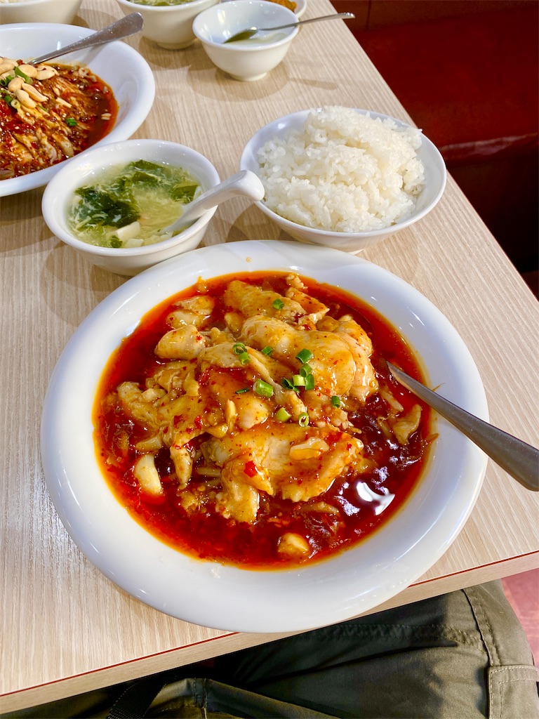 白身魚スパイシー煮込みセット 梅雨の時期に辛い料理を食べると 食欲全開。 水煮鱼套餐四川料理四川四川風chinesefoods中華料理魚魚料理白身魚白身魚煮辛いもの好き辛い好きな人と繋がりたいしびれピリ辛上野上野グルメ上野ランチ上野。