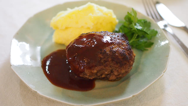 家庭的な基本のハンバーグのレシピ 作り方:白ごはん.com。